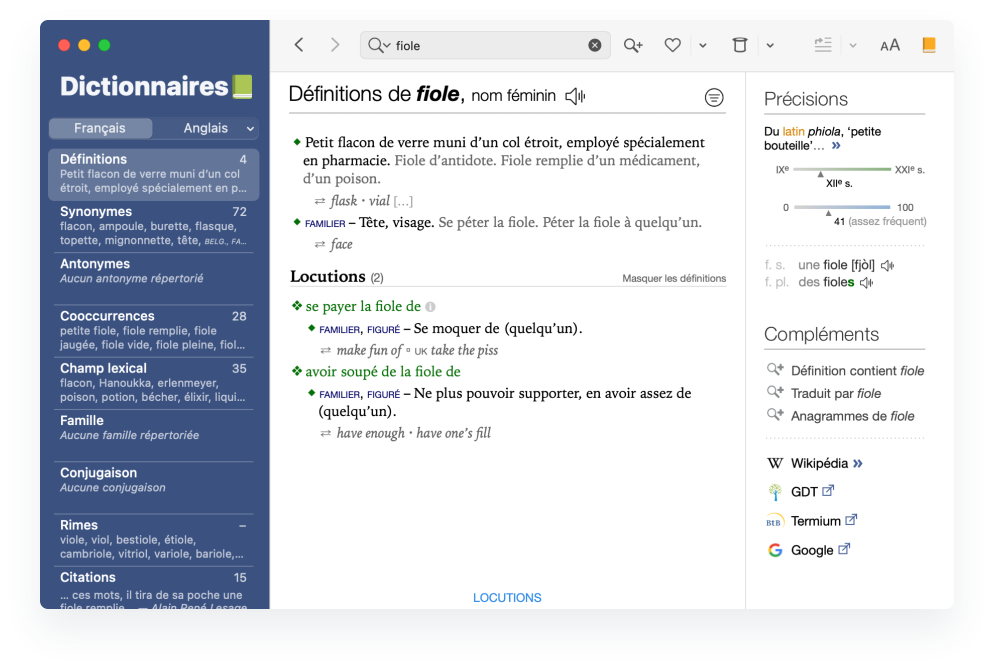 - Accès contextuel aux dictionnaires