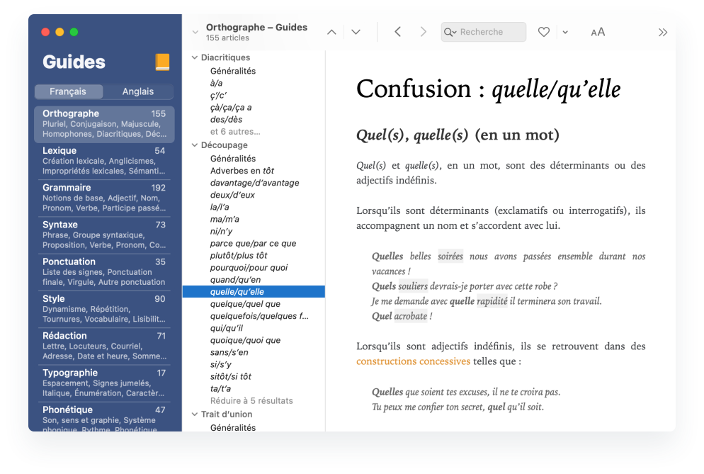 - Plus de 200 réglages : linguistique, typographie, style, interface