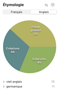 Dans un texte bilingue, plusieurs filtres du prisme Statistiques et du prisme Inspection affichent les boutons Français et Anglais, qui vous permettent de consulter en alternance l’analyse des passages français et des passages anglais.