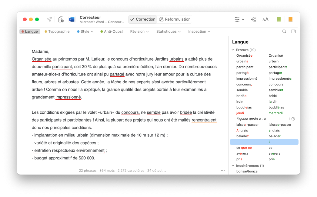 - Correction Multidocument qui traite automatiquement les fichiers texte, Markdown, HTML et LaTeX d’un dossier
