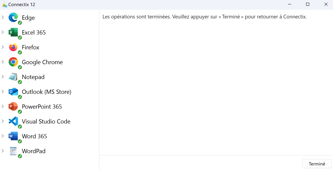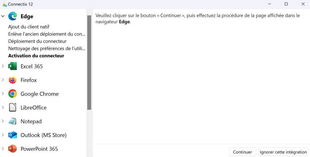 - Connectix peut ouvrir des logiciels, comme les navigateurs, pour activer des connecteurs. Suivez alors les instructions dans la nouvelle fenêtre.