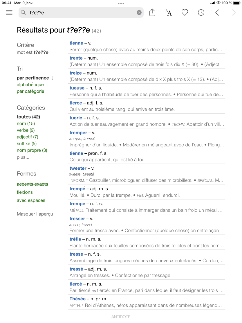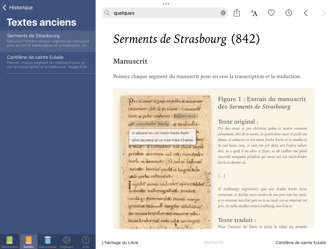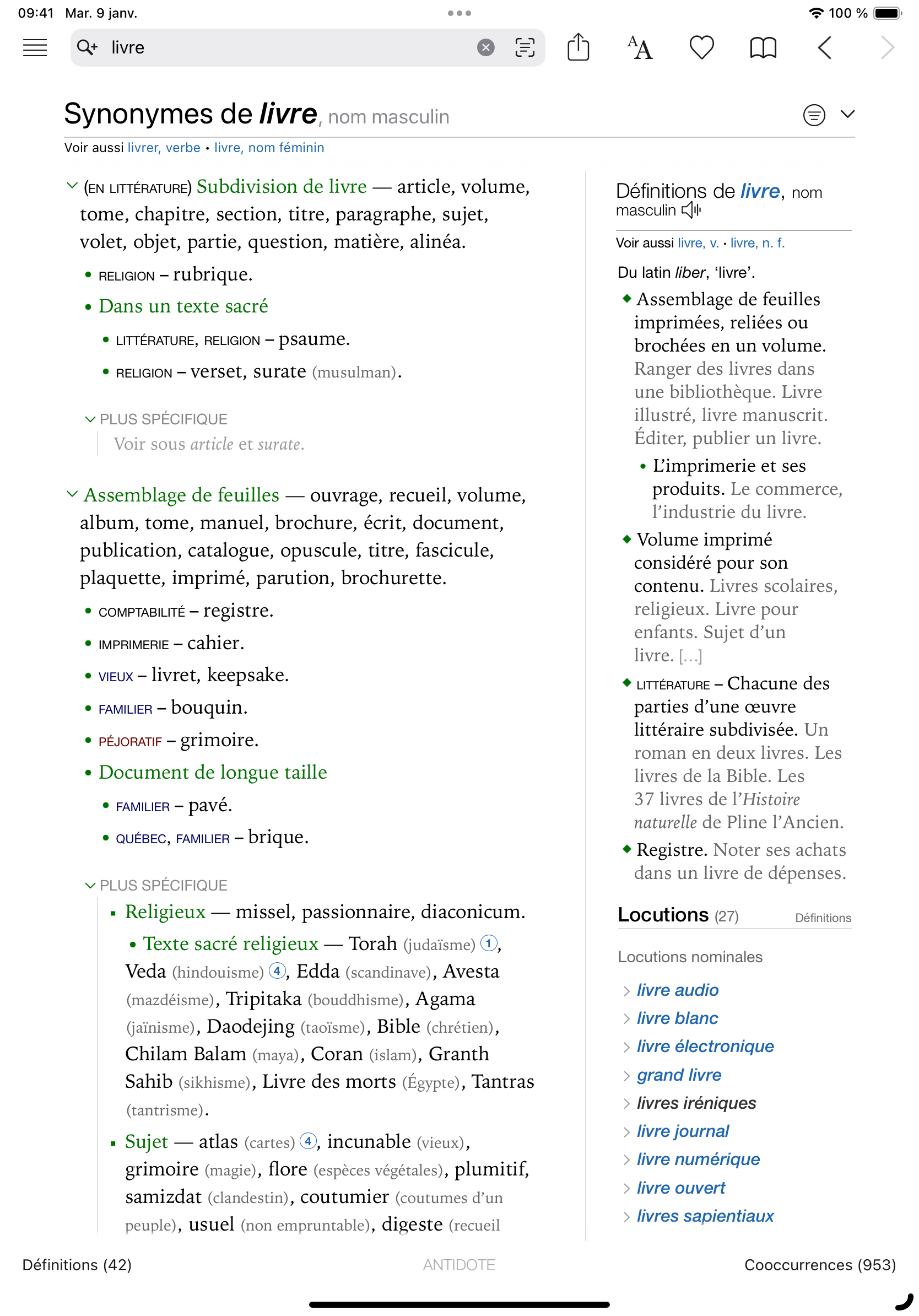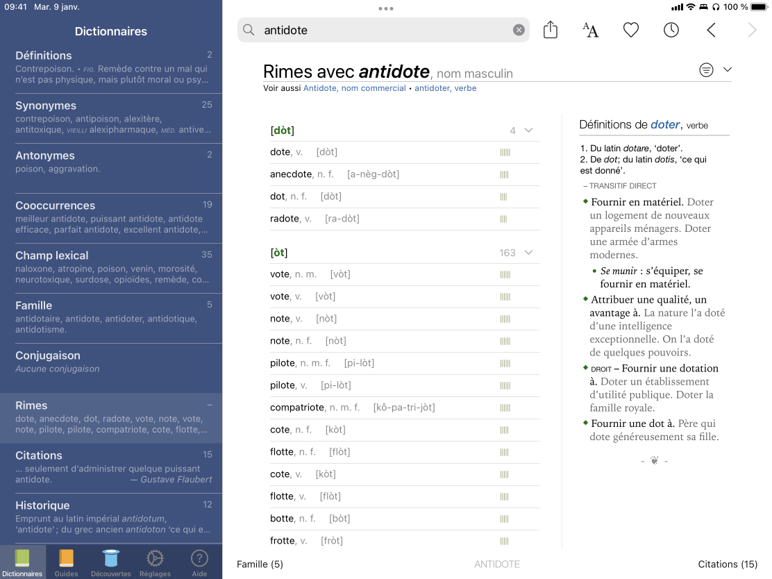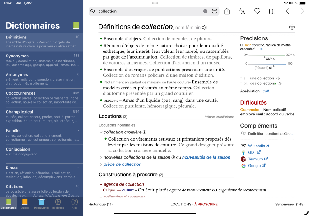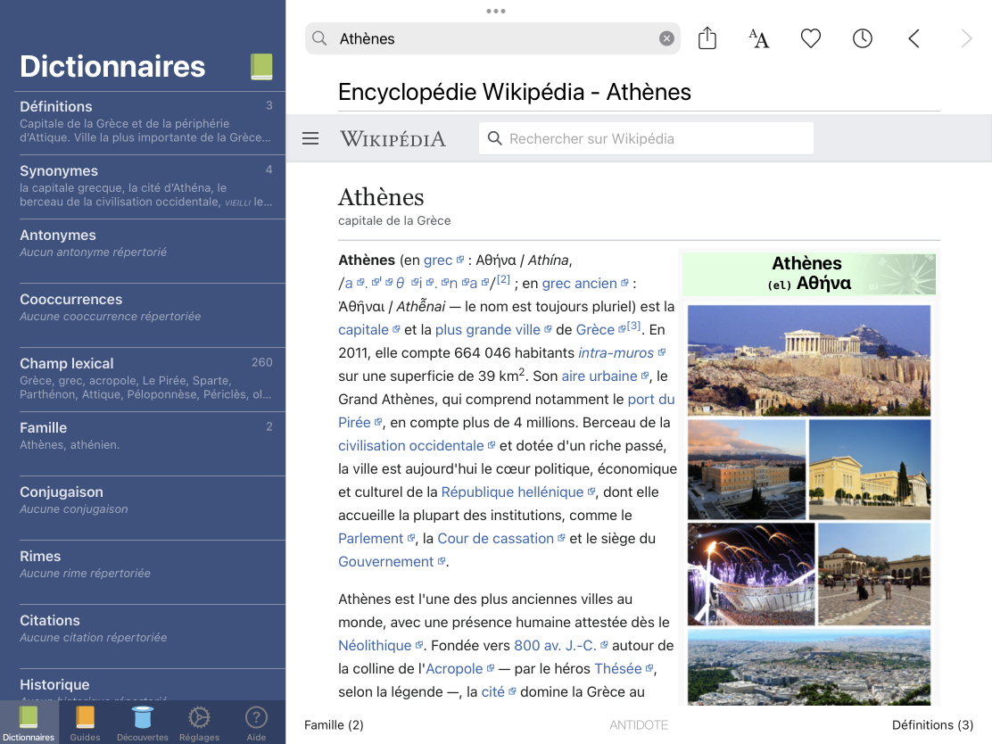 Profitez de l’accès intégré à l’encyclopédie Wikipédia, sans avoir à quitter Antidote Mobile (connexion Internet requise).