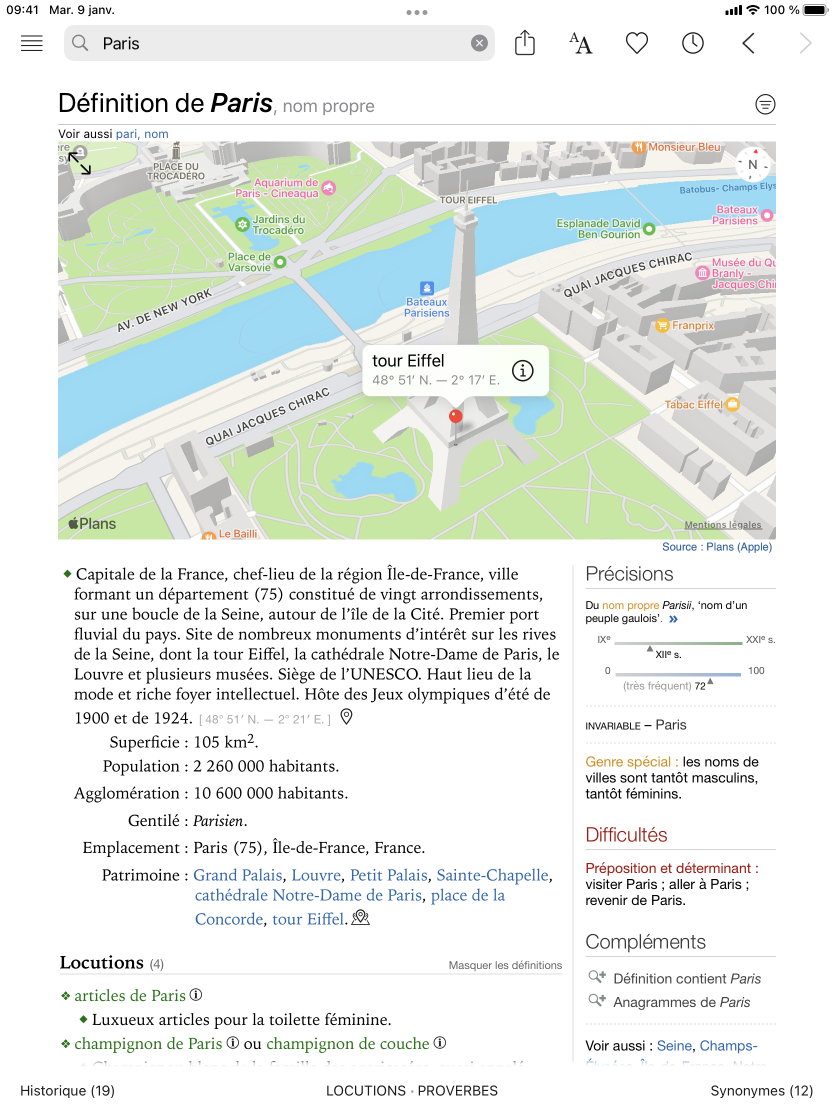 Plongez-vous dans les trésors du français : plus de 172 000 mots et locutions, la prononciation avec l’accent de Paris ou Montréal, l’étymologie, les difficultés…