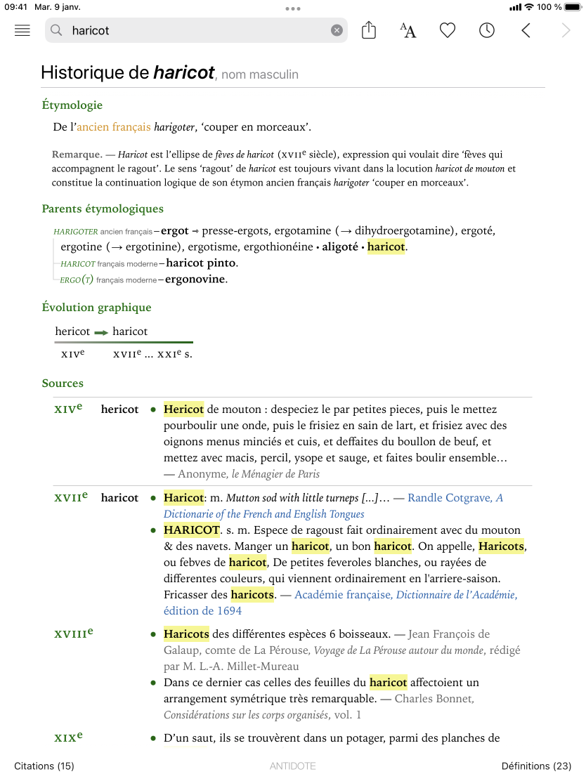 Partez à la découverte des notices étymologiques d’Antidote Mobile.