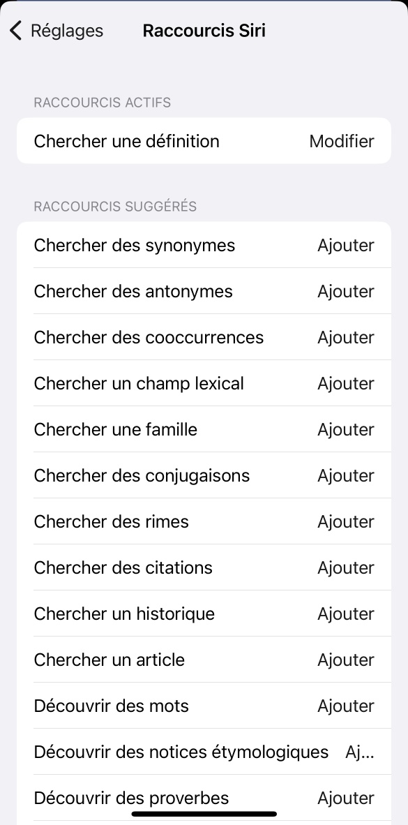 Pour toutes les versions d’iOS, rendez-vous dans les réglages d’Antidote Mobile et sélectionnez Raccourcis Siri. Choisissez ensuite le ou les raccourcis que vous souhaitez, et suivez les instructions.