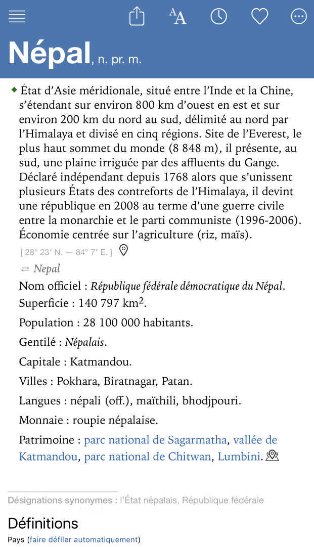 - Nouvelles entrées : découvrez une sélection d’ajouts aux dictionnaires, très récents (depuis la dernière mise à jour) et assez récente (depuis la parution de l’édition courante).