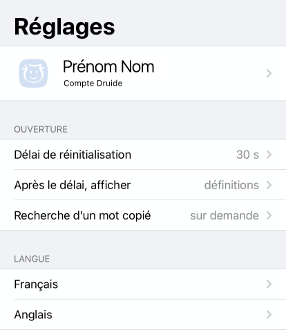 Synchronisation : synchronisez vos mots et articles favoris avec Cumulix ou iCloud (voir le chapitre Synchronisation).
