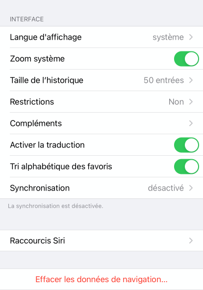 Effacer les données de navigation : cette opération effacera tous les historiques de navigation dans les dictionnaires, les guides et les découvertes.