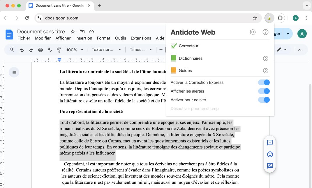 Voici les étapes pour corriger votre texte à partir du Connecteur Antidote.