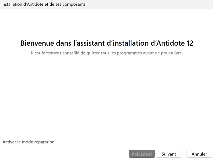Cliquez sur Suivant dans la fenêtre d’installation.