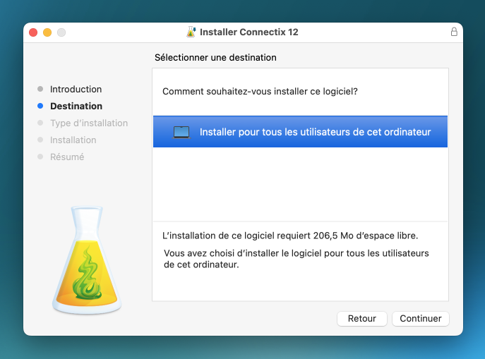 Cliquez sur Continuer pour installer Connectix pour tous les utilisateurs.
