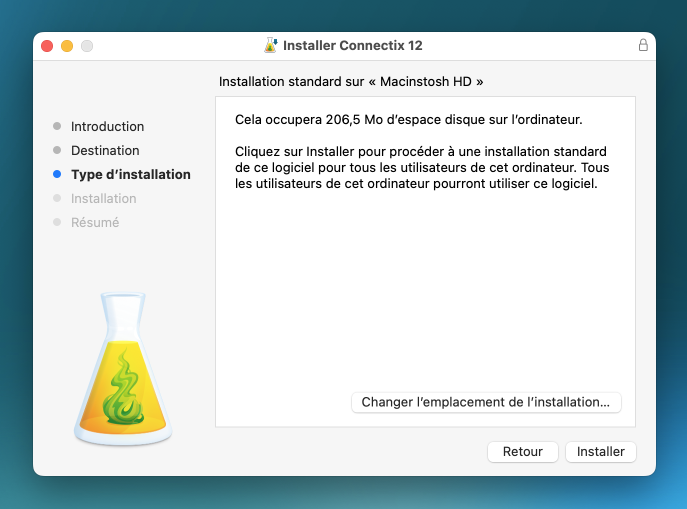 Doublecliquez sur l’icône de la fiole pour lancer l’installation.