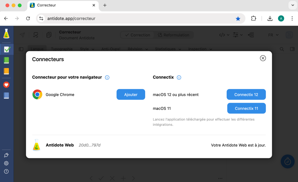 Ajouter le Connecteur Antidote à Chrome