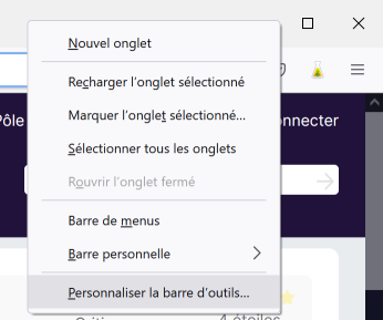 Astuce — Pour choisir les icônes qui figurent dans la fenêtre de votre navigateur, positionnez votre souris dans la barre grise et faites un clic droit. Sélectionnez l’option Personnaliser la barre d’outils, puis assurez-vous que la fiole s’affiche bien où vous le souhaitez.