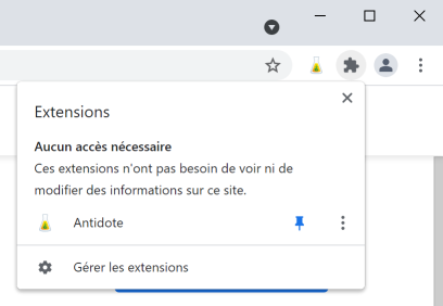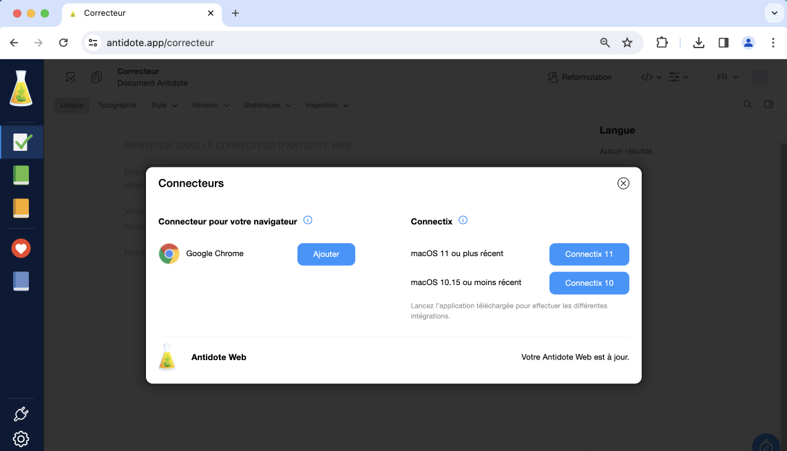 Guide de démarrage / Utilisation d’Antidote Web dans vos logiciels / Ajouter les connecteurs / Navigateur seulement / Google Chrome