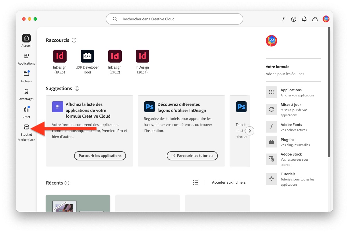 Cliquez sur "Stock et Marketplace", dans les icônes de gauche :