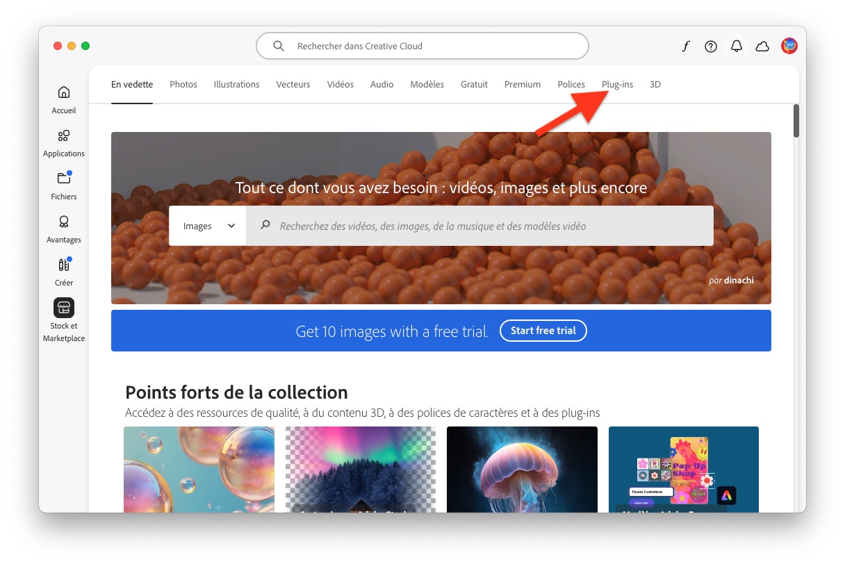 Dans la ligne d'onglets, à droite, cliquez sur "Plug-ins" :