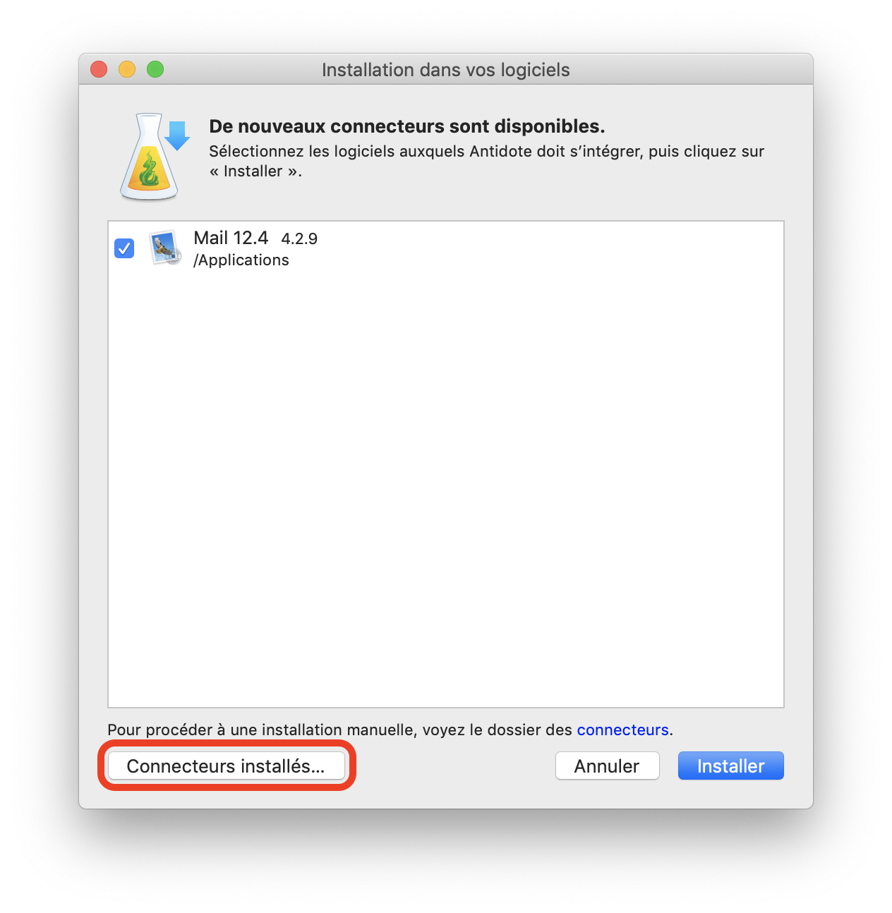 - Lancez Connectix, accessible dans Antidote depuis le menu Aide > Installation dans vos logiciels...