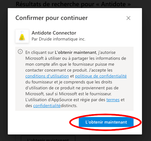 - Dans le dialogue qui apparaît, cliquez sur L’obtenir maintenant.