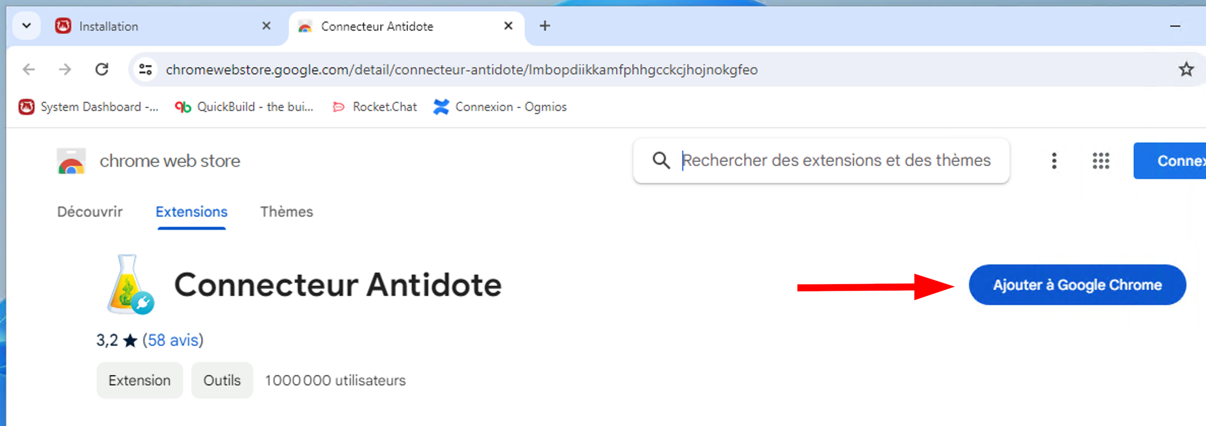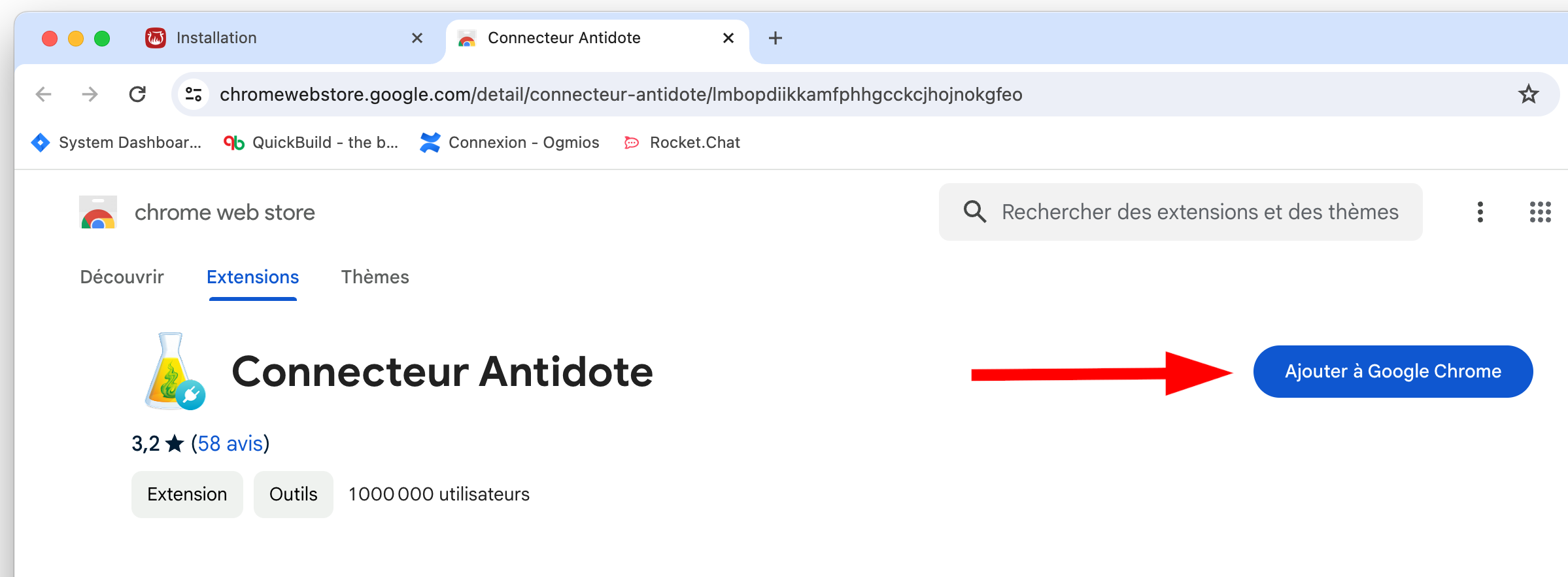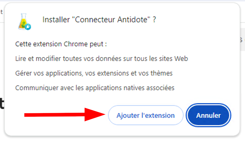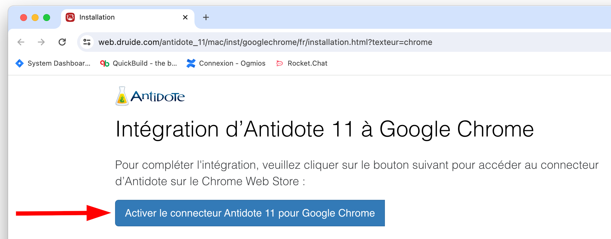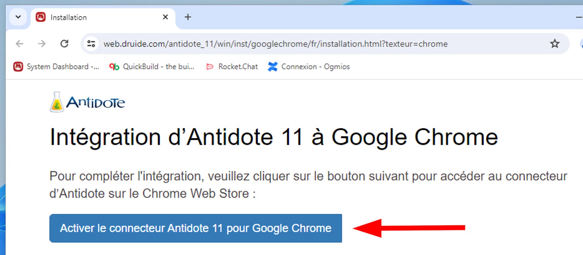 - Une fenêtre de navigateur s’ouvrira. Cliquez sur Activer le connecteur Antidote 11 pour Google Chrome.