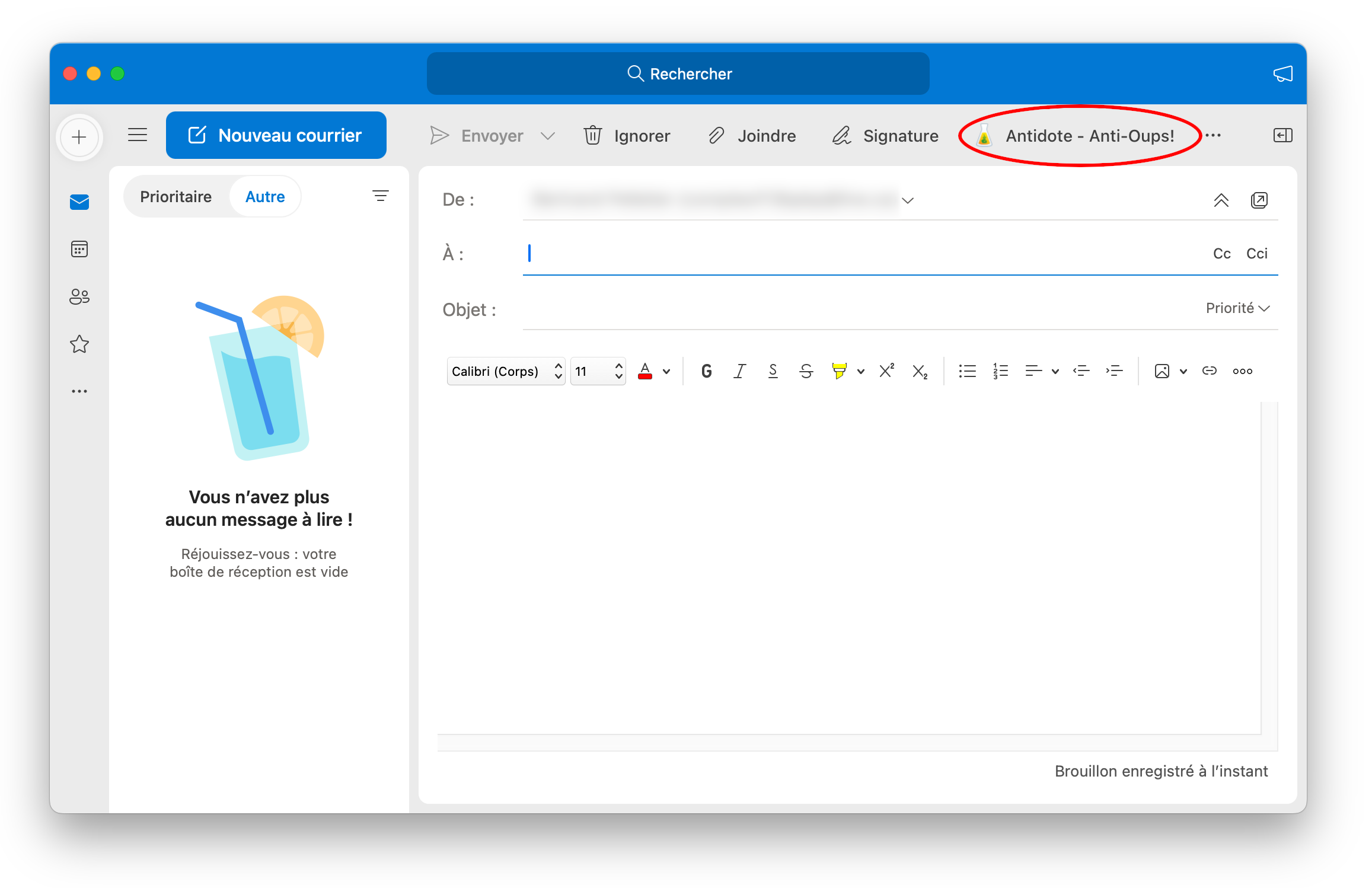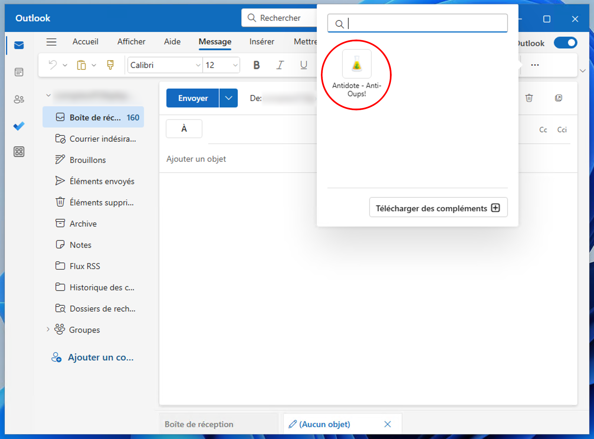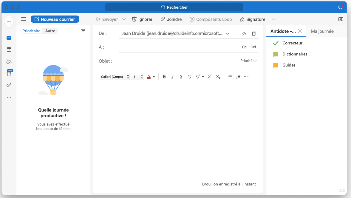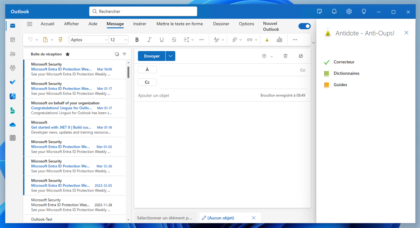 Note importante — Avant de pouvoir utiliser Antidote 11 dans le nouvel Outlook, vous devez d’abord avoir complété l’intégration en suivant l’une des deux procédures suivantes :