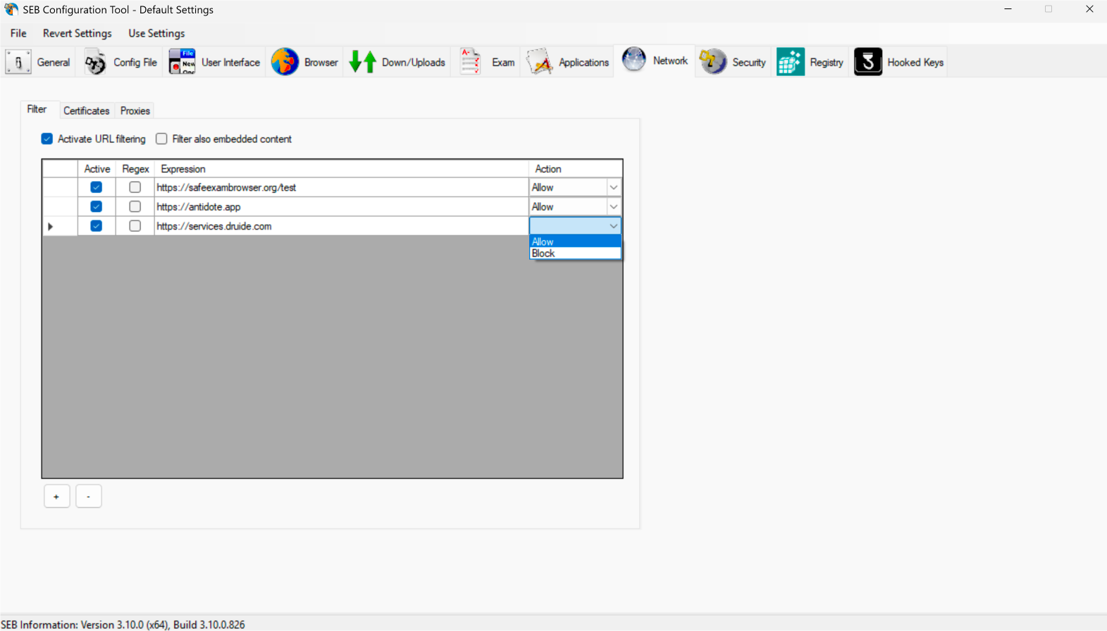 Pour permettre l’utilisation d’Antidote Web lors d’un examen, vous devez activer certaines autorisations dans l’outil de configuration de SEB.