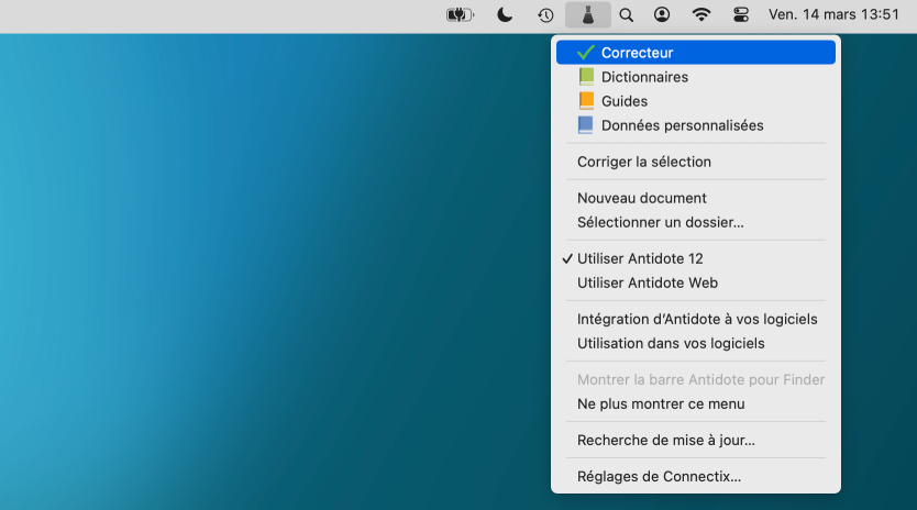 Pour savoir comment utiliser Antidote dans une application en particulier, consultez la section Utilisation d’Antidote dans vos logiciels de ce site. Vous y trouverez des instructions détaillées pour toutes les applications compatibles avec votre système d’exploitation.