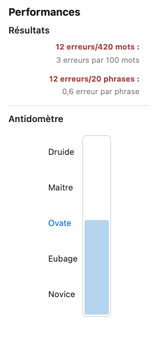 Voici un autre filtre statistique plutôt sympathique. Vous trouverez, sous Performances, l’original Antidomètre! Où se situera votre texte dans cette échelle? Atteindrez-vous le niveau ultime du druide? 🧙🏻♂️