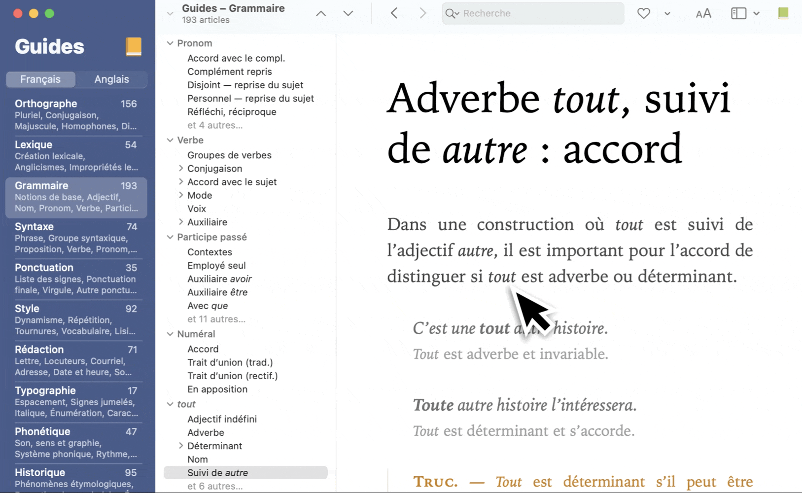 Notre conseil : apprenez de vos erreurs avec Antidote. Faites-en votre tuteur numérique en vous attardant à chacune des détections du correcteur. Ne vous contentez pas d’accepter les corrections proposées. Consultez l’infobulle et creusez la question : que devez-vous savoir pour ne plus commettre cette erreur?