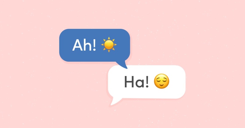 Remarquons quand même que la graphie ha, qui débute par un h qu’on peut prononcer en expirant (phonème [h]), est tout indiquée pour représenter une exclamation vive, un éclat de rire, un cri, un soulagement ou toute émotion habituellement accompagnée d’une plus ou moins forte expiration.