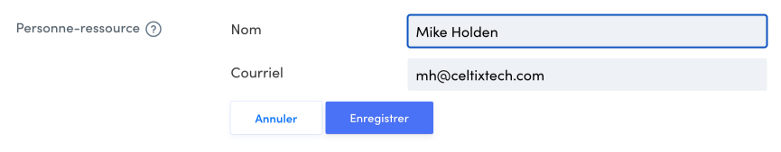 Cette section présente les coordonnées de la personne-ressource dans votre organisation pour ce qui concerne l’authentification SAML.