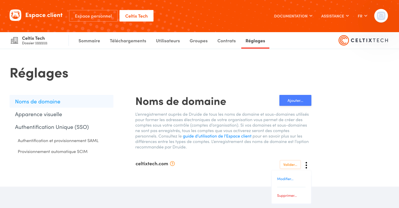Si vous êtes un administrateur ou un technicien pour votre organisation, vous pouvez ajouter un nom de domaine en suivant cette procédure :