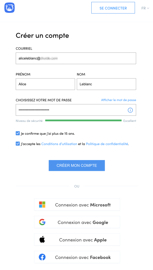 Vous pouvez créer votre compte Druide en remplissant un court formulaire au moment :