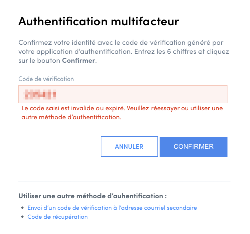 Si vous n’arrivez pas à vous connecter avec l’AMF, utilisez l’un de vos codes de récupération.