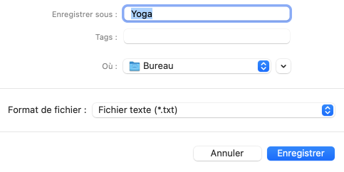Sur Windows, sélectionnez Fichier dans la barre de menus d’Antidote, puis Exporter le dictionnaire. Sur Mac, cliquez sur Exporter dans le menu à droite du nom du dictionnaire personnel. Dans la fenêtre d’exportation, précisez ensuite le format souhaité (Texte ou XML), ainsi que l’endroit où vous désirez enregistrer le fichier résultant. Antidote produit un document contenant toutes les informations que vous avez fournies pour chacune des entrées du dictionnaire.