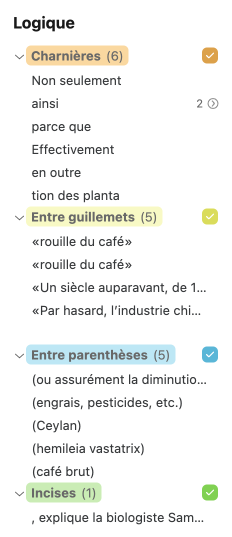 Pour procéder à la révision complète du texte, il suffit de naviguer de filtre en filtre et de cas en cas, en évaluant les surlignés d’un œil critique et en corrigeant les problèmes au besoin.