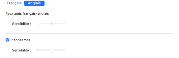- À l’installation, les pléonasmes sont ajustés à une sensibilité moyenne.