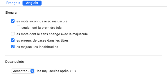 Les réglages vous proposent d’accepter, d’exiger ou de refuser les majuscules après le deux-points.