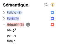 Chaque filtre des volets de révision et de style est associé à un article afin d’aider à évaluer les modifications éventuelles à apporter au texte. À l’aide de la souris, survolez le titre du filtre dans la liste des résultats pour faire apparaitre l’icône . Cliquez sur cette icône pour accéder à l’article correspondant. Vous pouvez également cliquer sur l’icône située dans le coin supérieur droit de la liste des résultats pour faire afficher dans les guides un article thématique qui dresse un portrait général du volet courant.