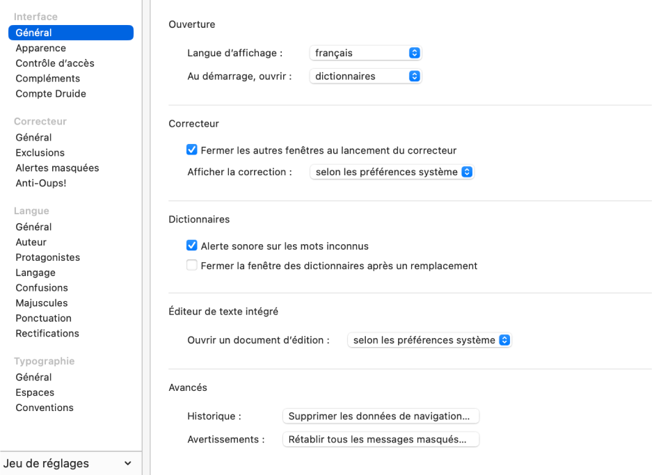 - À l’installation, les nouvelles corrections s’affichent selon les préférences système.