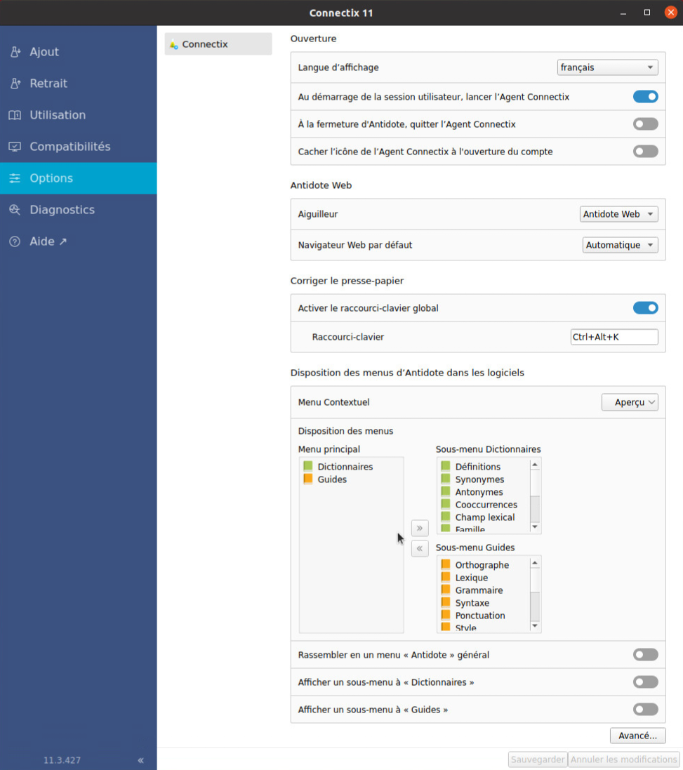 Note — La compatibilité avec Linux est assurée par Antidote Web (offert avec les forfaits Antidote+) depuis la parution d’Antidote 11. Le choix sera donc offert uniquement si vous détenez encore votre licence d’une édition antérieure, comme Antidote 10.