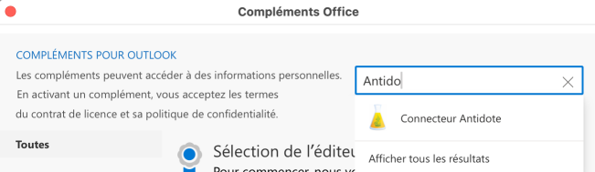 Ajouter le Connecteur Antidote - Anti-Oups!