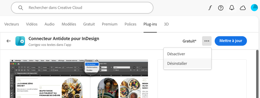 - Rendez-vous à la page du Connecteur Antidote pour InDesign dans Adobe Creative Cloud.