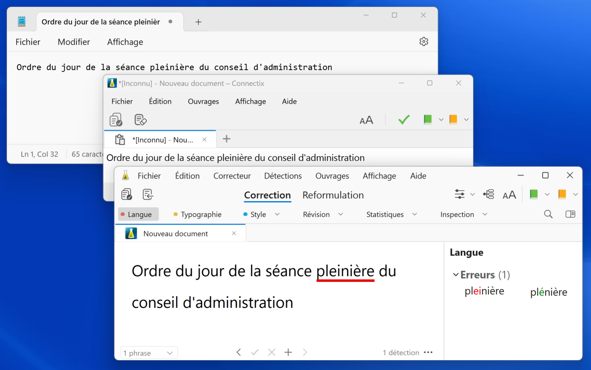- La fenêtre du correcteur d’Antidote, accompagnée d’un document interne, s’ouvre automatiquement et analyse directement le texte copié.