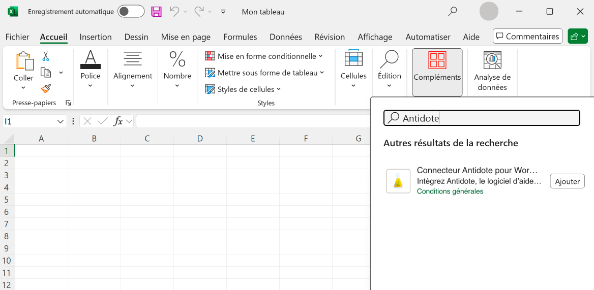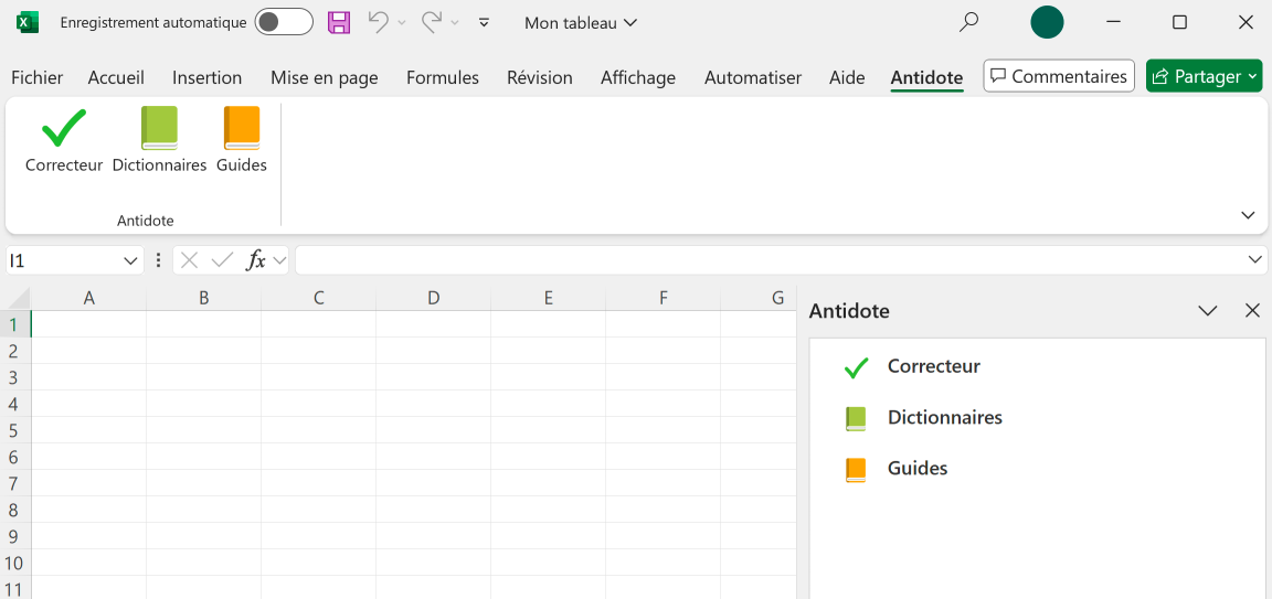 Il existe plusieurs façons d’utiliser Antidote dans un feuille de calcul Excel.