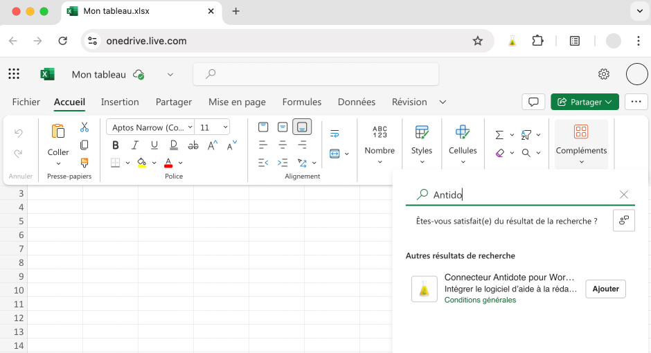 Si ce n’est déjà fait, ajoutez le Connecteur Antidote pour Word, Excel, PowerPoint et One Note.