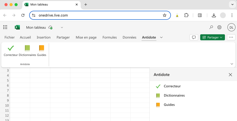 Il existe plusieurs façons d’utiliser Antidote dans un feuille de calcul Excel.