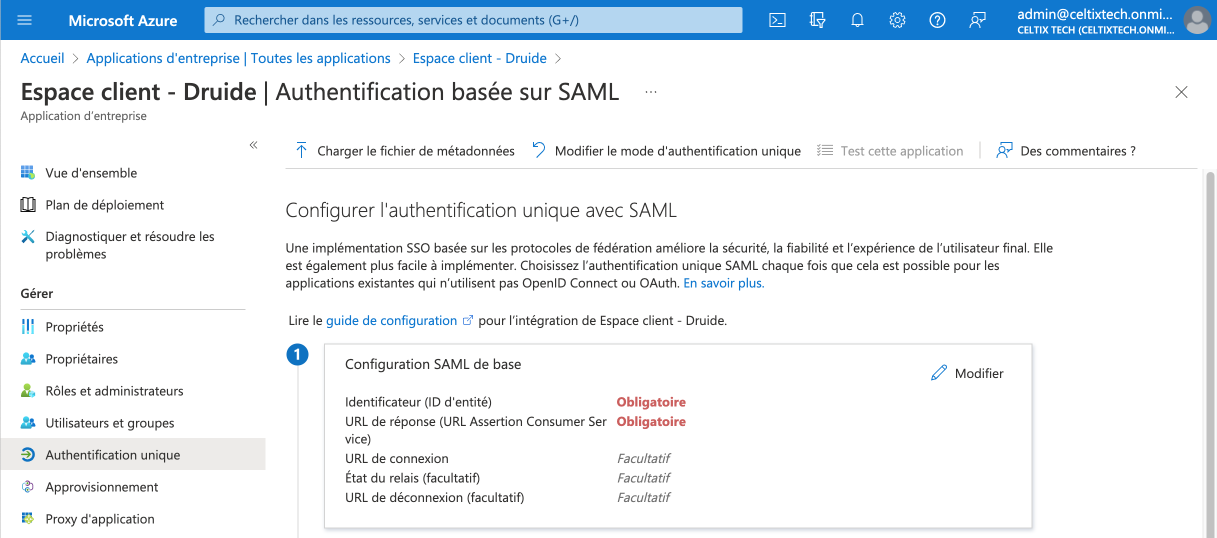 Cliquez sur le bouton Modifier du premier bloc intitulé Configuration SAML de base.
