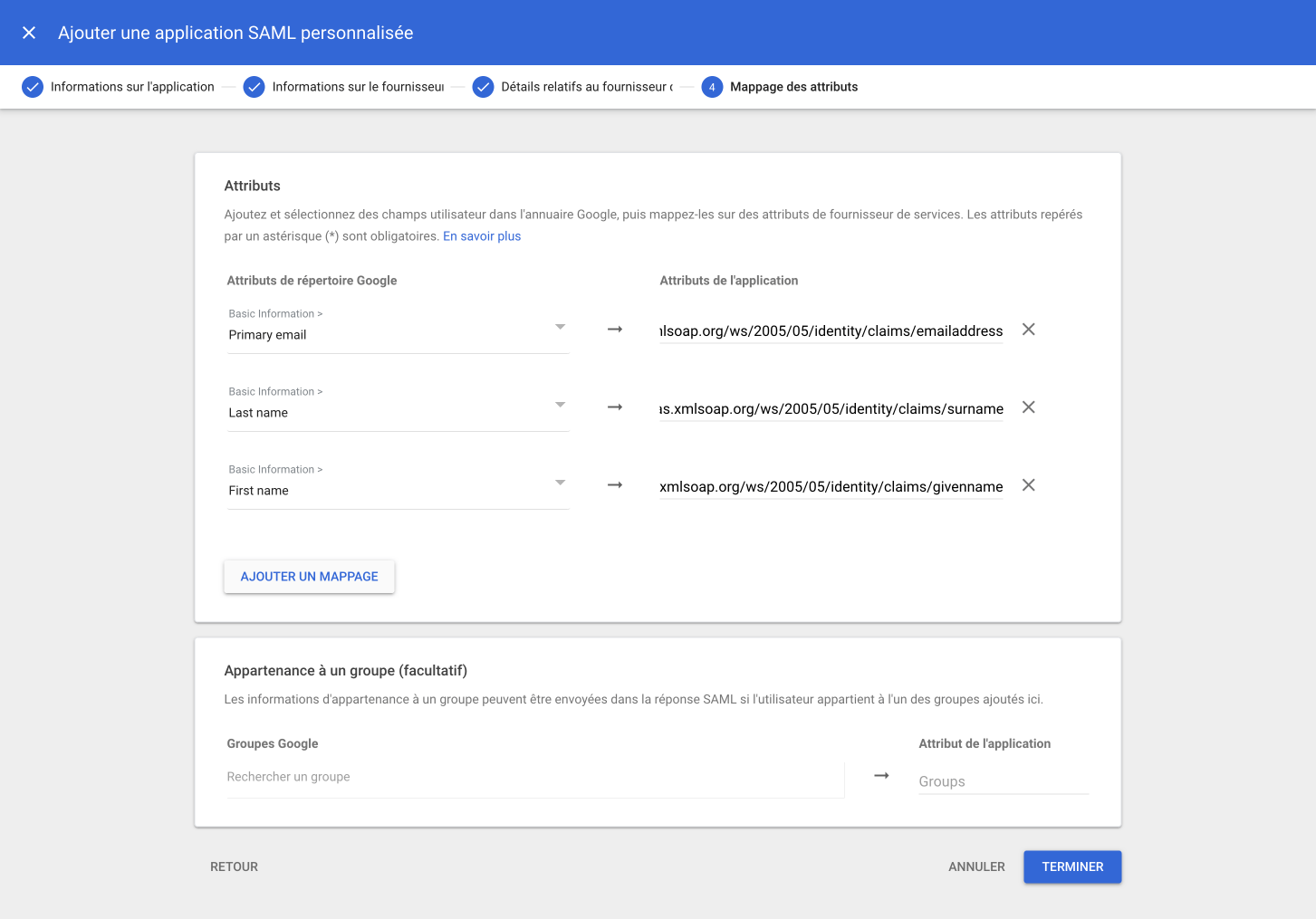 Procédure pour configurer l’authentification SAML avec Google Cloud