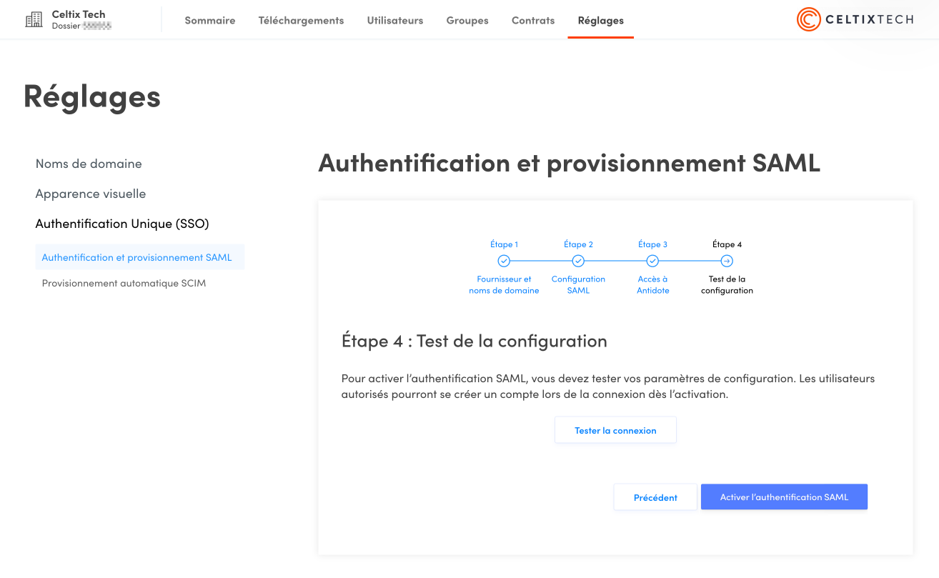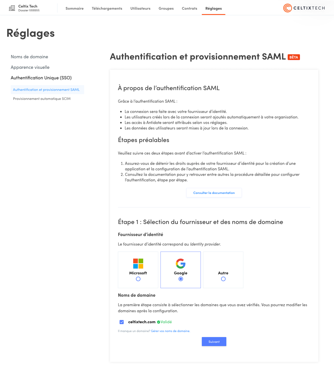 Note — Si vous comptez configurer le provisionnement automatique SCIM par la suite, sachez que le choix de gestion des accès à Antidote que vous y préciserez aura préséance sur celui indiqué ici.